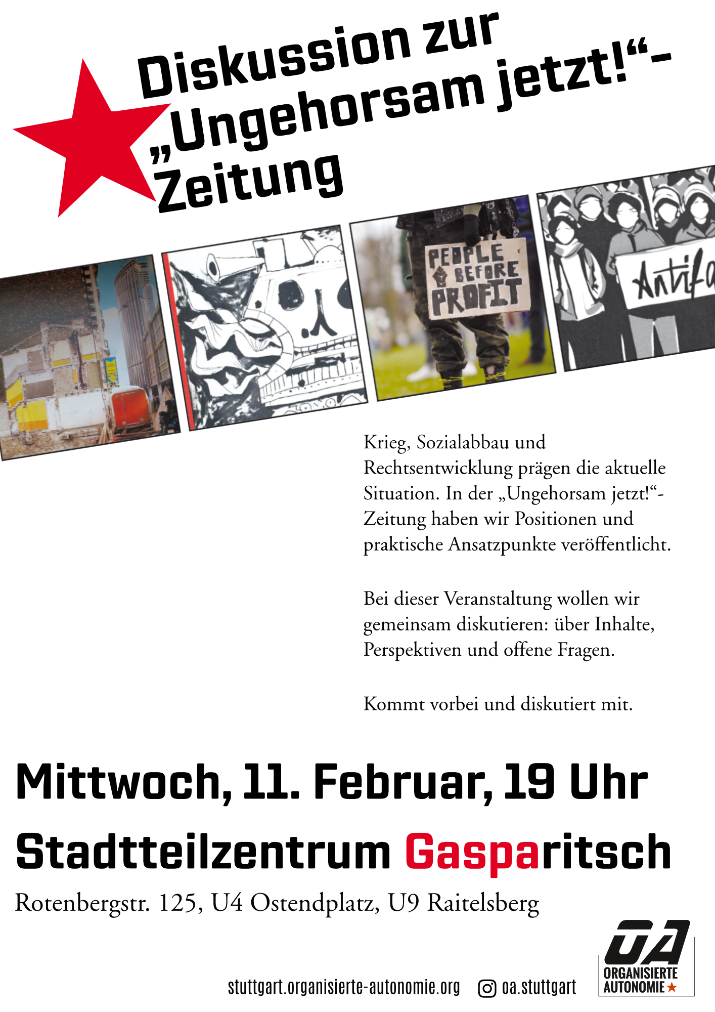 Diskussion zur „Ungehorsam jetzt!“-Zeitung